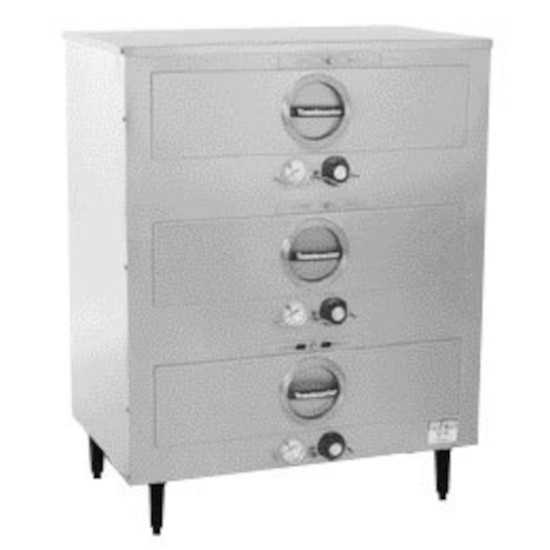 An excellent combination of craftsmanship, durability, and convenience, the Toastmaster 3C84DT09 29 inch free-standing 3 drawer warmer's precise heat and humidity controls make it the perfect way to keep your breads, vegetables, and meats at the ideal holding temperature until serving!